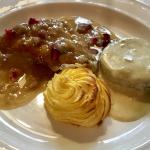 La Delegazione dell'Alto Vicentino si è riunita presso il ristorante "Villa Bassi" per la riunione conviviale dedicata al solstizio d'estate. Foto 1: da sinistra: i titolari del locale Marilena Cavedon e Gianfranco Zenari con i cuochi, il Delegato Renzo Rizzi e il Simposiarca Pierangelo Bertoldo. Foto 2: il Delegato dell'Alto Vicentino Renzo Rizzi e il relatore della serata Franca Miotti. Foto 3: antipasto. Foto 4: tortelli ripieni. Foto 5: guancetta di maialino con verdure di stagione. Foto 6: zabaione ghiacciato con ciliegie al porto.