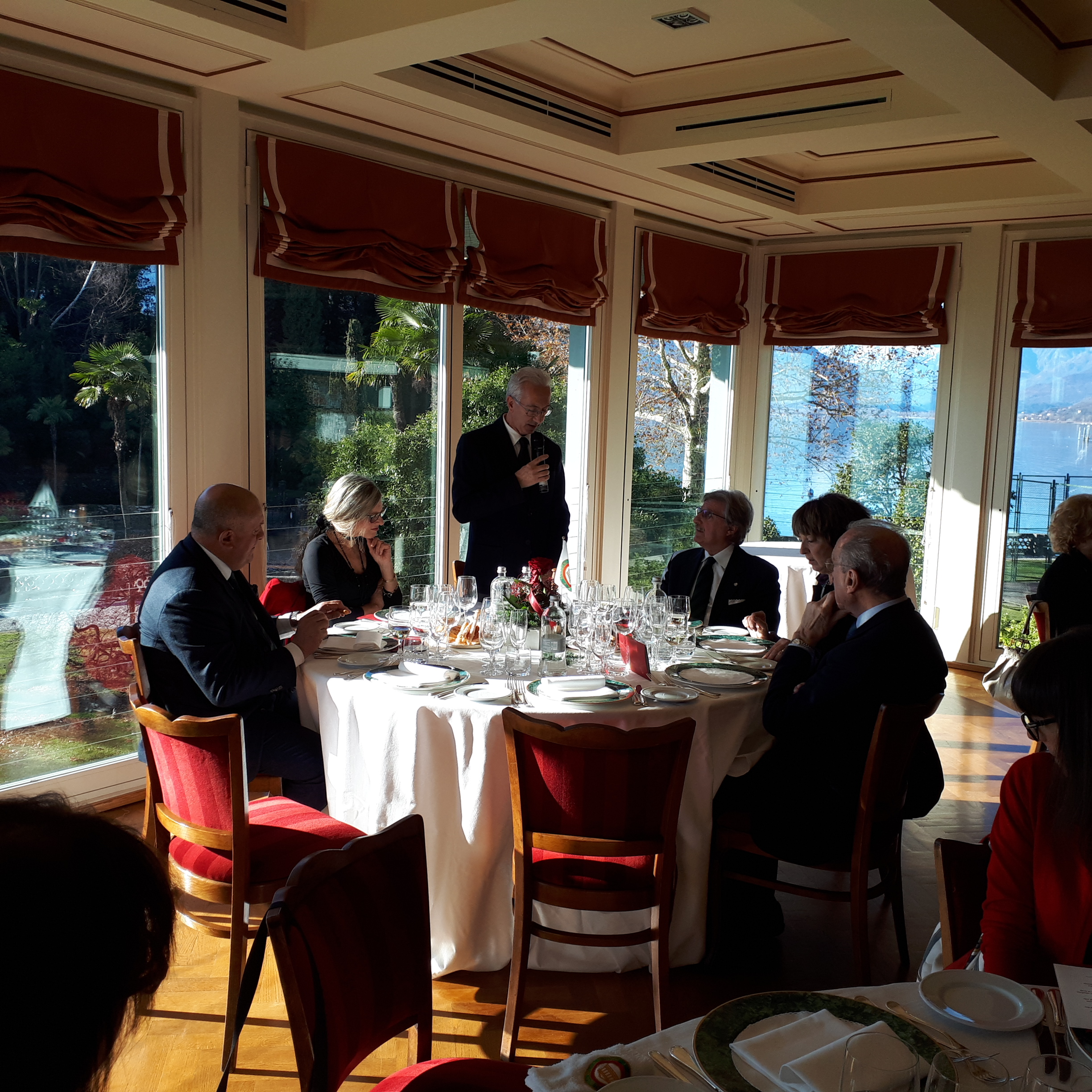 Per le Delegazioni di Verbano - Cusio - Ossola e Novara il momento degli Auguri si è svolto presso il ristorante "la Beola" del Grand Hotel Majestic di Verbania Pallanza. Foto 1: Pallanza: cittadina affacciata sul Lago Maggiore. Foto 2: da sinistra: Luigi Alessandro (Consultore Nazionale), Ivana Belloni, Pier Carlo Lincio (Delegato di Verbano - Cusio - Ossola), Piero Spaini (Delegato di Novara), Elisabetta Cocito ( Direttrice CST Piemonte) e il coniuge Luigi. Foto 3: vista del lago. Foto 4: un momento della giornata con lo chef Danilo Bortolin. Foto 5: il parco e il lago verso Nord. Foto 6: l'isola, proprietà Borromeo, dove soggiornò a lungo il direttore d'orchestra Arturo Toscanini.