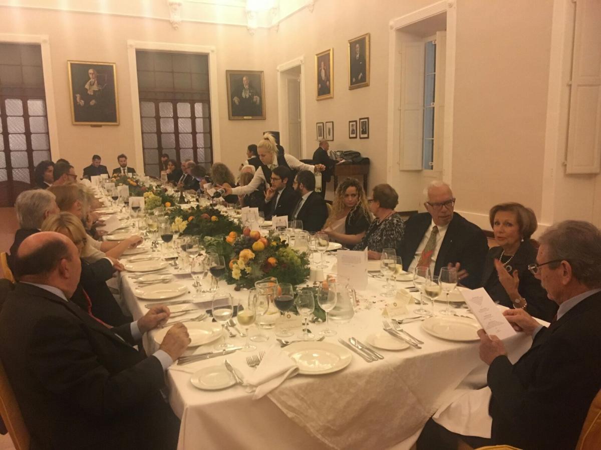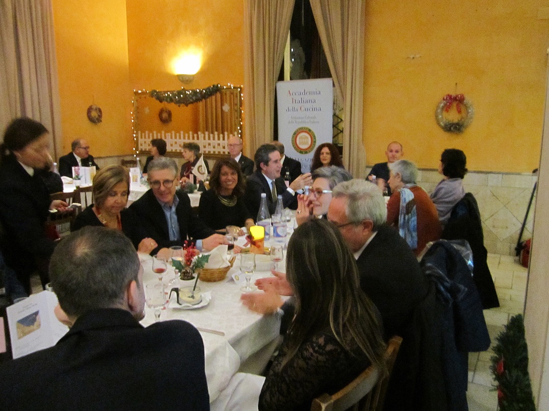 Per la Delegazione di Siracusa la cena degli auguri di Natale si è svolta presso il ristorante "Gran Caffè del Duomo". Foto 1: Accademici a tavola. Foto 2: Simonetta Agnello Hornby (Membro del CS e scrittrice), presente con il figlio George Hornby (testimonial d'eccezione della difficoltà motoria e coautore di "Nessuno può Volare"), Angelo Tamburini (Delegato di Siracusa), Ugo Serra (CT Sicilia Orientale), Angelica Tamburini. Foto 3: Vice Sindaco F.Italia, Bartolo, B. Lo Bianco, Simonetta Agnello, George Hornby e AngeloTamburini.