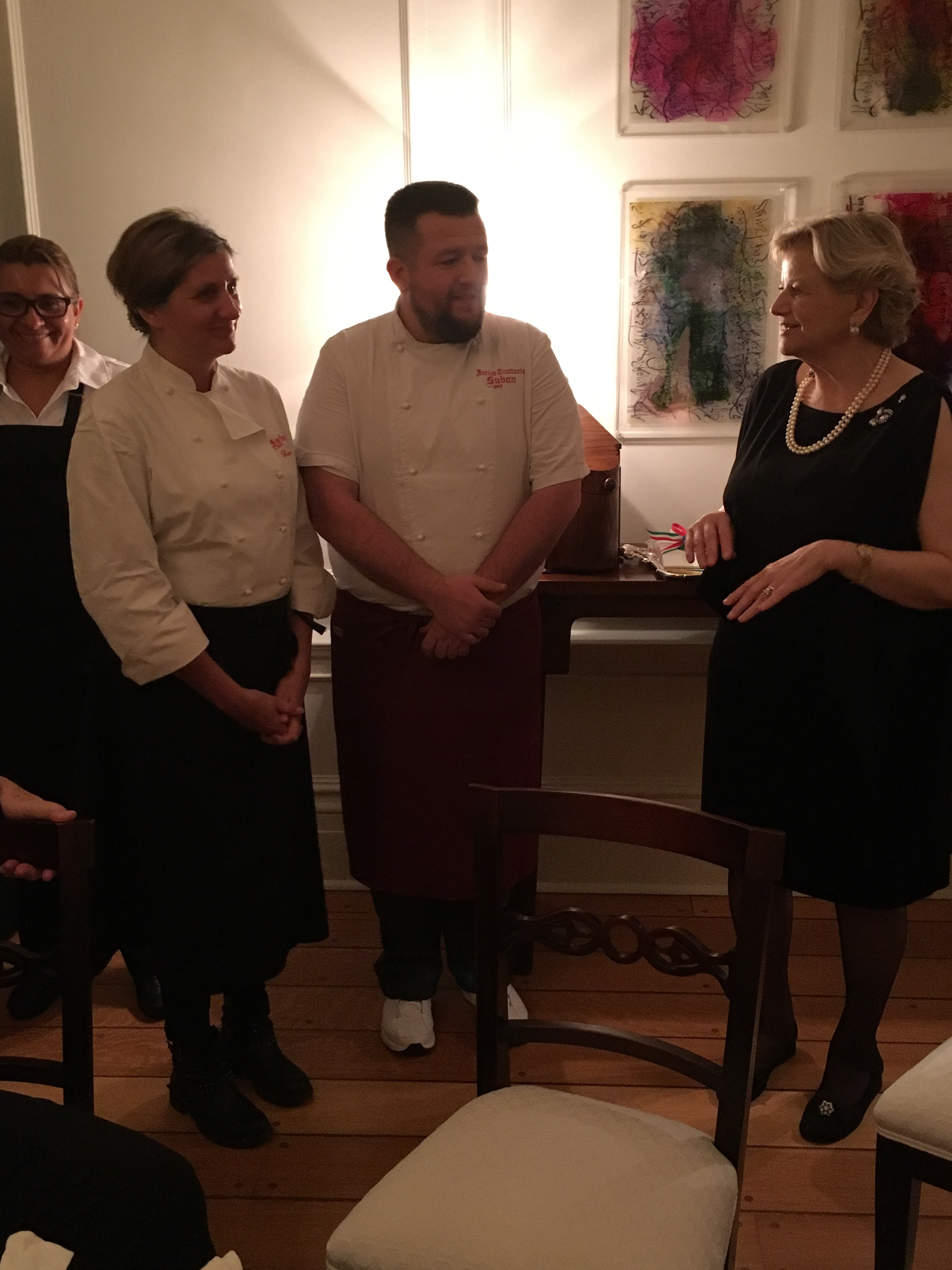 La Delegazione di Toronto ha invitato in Canada la delegazione di Trieste per promuovere quello che è stato definito “il quinto elemento”, cioè, oltre a terra, acqua, aria e fuoco, la qualità e l’eccellenza di prodotti legati al nostro territorio. Foto 1: Marisa Bergagnini (Delegata di Toronto), insieme a Mara Rondi (Consultore della Delegazione di Trieste). Foto 2: un momento della serata. Foto 3: Marisa Bergagnini (Delegata di Toronto) in compagnia degli chef del locale. Foto 4: Marisa Bergagnini in compagnia di Paolo Penso (Delegato di Trieste). Foto 5: Mara Rondi (Consultore Delegazione di Trieste). Foto 6: foto di gruppo con Marisa Bergagnini, l'Ambasciatore Claudio Taffuri, Paolo Penso e altri ospiti della serata.