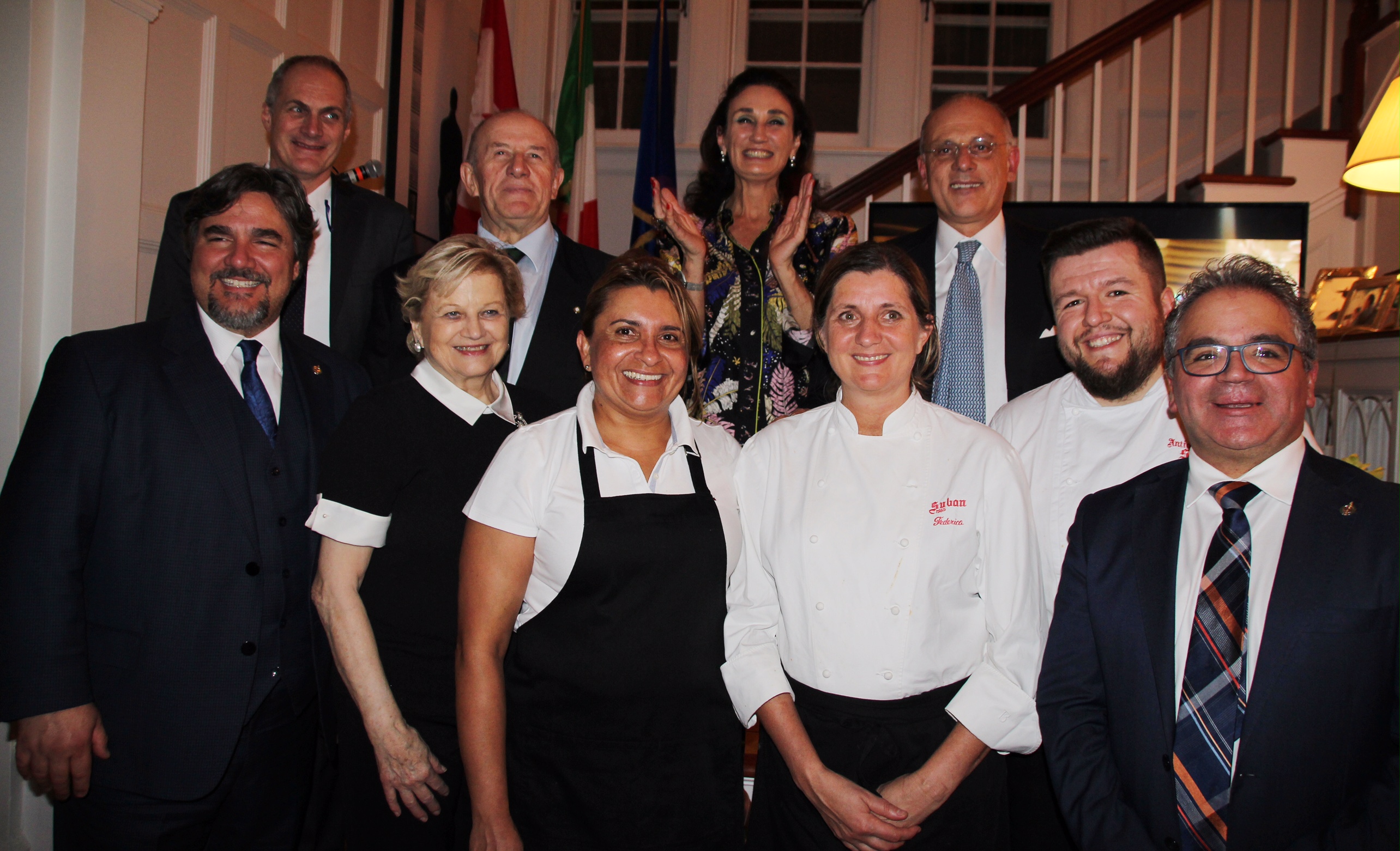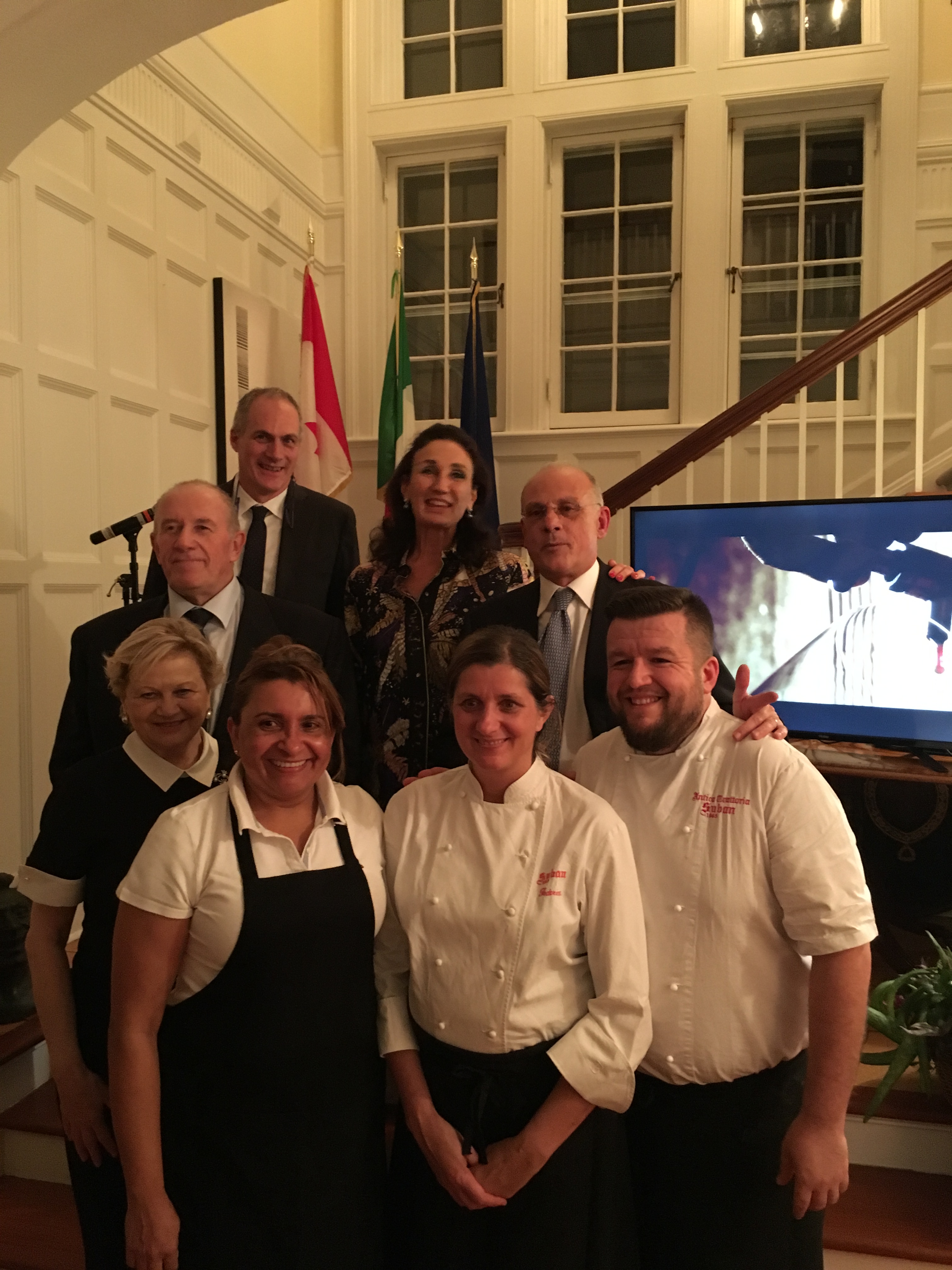 In occasione della II Settimana della Cucina Italiana nel Mondo, la Delegazione di Toronto è stata ospite alla residenza Ambasciatore d'Italia in Canada S.E. Claudio Taffuri. Foto 1: da sinistra, in prima fila: Pablo Rodriguez, Marisa Bergagnini (Delegata di Toronto), Isik Fortis, Federica Suban, Abdulhadar Huidur, Francesco Sorbara (Ministro per le infrastrutture). In seconda fila, da sinistra: Matteo Picariello (Direttore ICE), Paolo Penso (Delegato di Trieste), signora Maria Enrica Taffuri, Ambasciatore Claudio Taffuri. Foto 2: Paolo Penso (Delegato di Trieste). Foto 3: Sergio Bergagnini, On. Judy Sgro, Marisa Bergagnini.