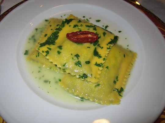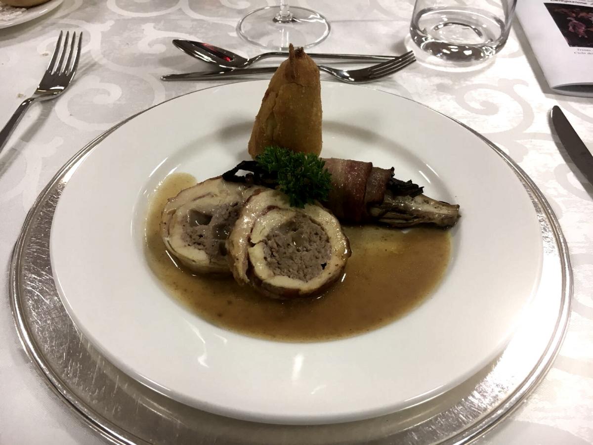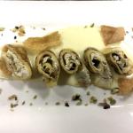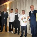 Per la Delegazione di Alto Vicentino la cena ecumenica si è svolta presso l'IPSSAR, scuola alberghiera di Recoaro Terme. Foto 1: il Delegato Renzo Rizzi consegna il volume "L'uso dei formaggi della cucina della tradizione regionale" al rappresentante dell'IPSSAR "P. Artusi". foto 2: antipasto con crespelle e crema di casatella. Foto 3: gnocchi con la fioretta e ricotta affumicata. Foto 4: rollatina con formaggio Asiago pressato e aceto balsamico. Foto 5: bavarese alla ricotta e frutto della passione. Foto 6: particolare del tavolo con i commensali. Foto 7: premiazione degli studenti dell'IPSSAR.