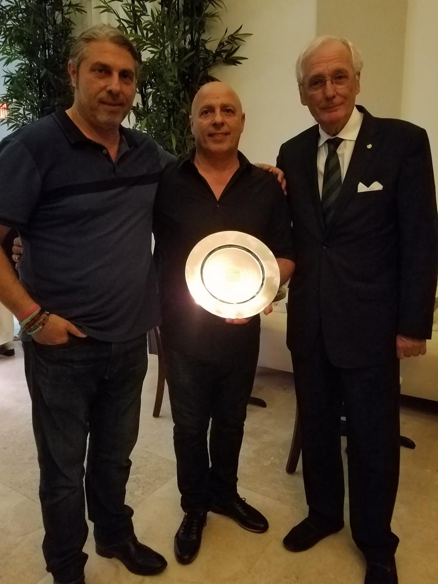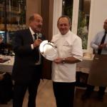 Per la Delegazione di Beirut la cena in occasione della II Settimana della Cucina Italiana nel mondo si è svolta presso il ristorante "Paper Moon". Foto 1: il Delegato Mario Haddad offre il piatto in silver dell'Accademia allo chef del ristorante, Nicola Offredi. Foto 2: un momento della serata. Foto 3: un piatto creato dallo chef per l'occasione.