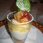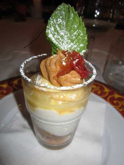 Riunione conviviale dedicata alla Cena degli Auguri tenuta dalla Delegazione dell'Alto Vicentino presso l' Hotel Ristorante Villa Fracanzana di Montebello Vicentino. Foto 1: particolare della tavola. Foto 2: sformatino su crema di asiago. Foto 3: dolce brasadelo e zabaione al recioto. Foto 4: Accademici e famigliari a tavola. Foto 5: il Delegato Renzo Rizzi con il Vice Delegato, Giuseppe Zonin, insieme al titolare del locale, lo chef , il sommelier ed il maestro di sala.