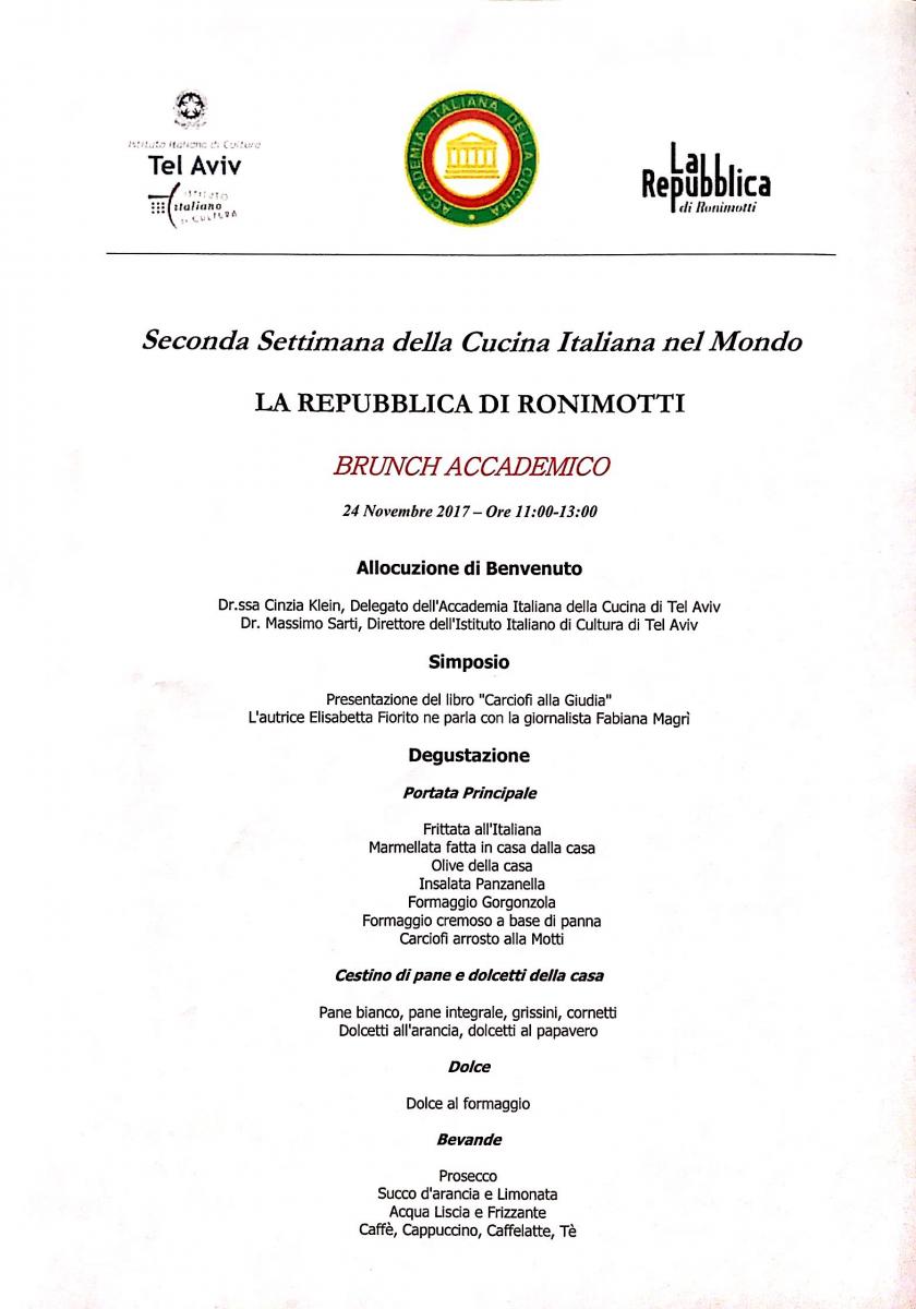 II SETTIMANA DELLA CUCINA ITALIANA NEL MONDO 2017 - Delegazione di Tel Aviv