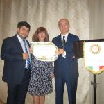 Cena conclusiva della II Settimana della Cucina italiana nel Mondo che si è tenuta presso il Ristorante "Due baci" a Miami. Foto 1e2: momenti della serata. Foto 3: il Delegato Antonio Pianta (a destra) consegna il piatto d'argento dell'Accademia ai proprietari e ristoratori Tonino e Roberto Doino. Foto 4: melanzana, presentata in occasione della serata.