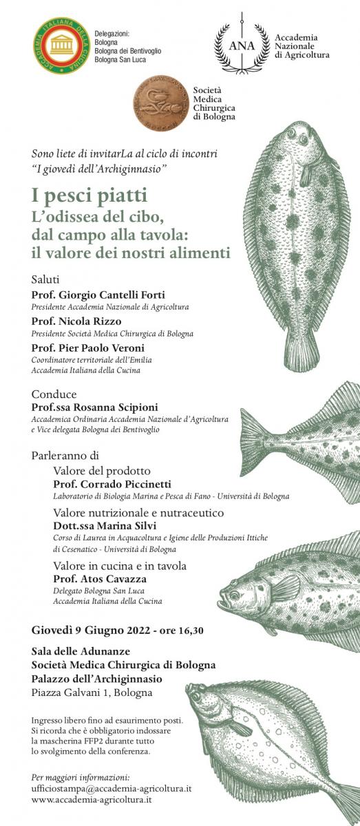 A partire dal 28 aprile fino al 24 novembre (ad accezione dei mesi di luglio e agosto), si terrà in modalità mista - parte in presenza presso il Cubiculum Artistarum o la Società Medica Chirurgica e parte online su piattaforma a libero accesso Jitsi Meet - il quarto ciclo di conferenze on line “L’Odissea del cibo, dal campo alla tavola: il valore dei nostri alimenti” organizzato dalle Delegazioni bolognesi dell'Accademia Italiana della Cucina in collaborazione con l'Accademia Nazionale di Agricoltura e la Società Medica Chirurgica di Bologna.