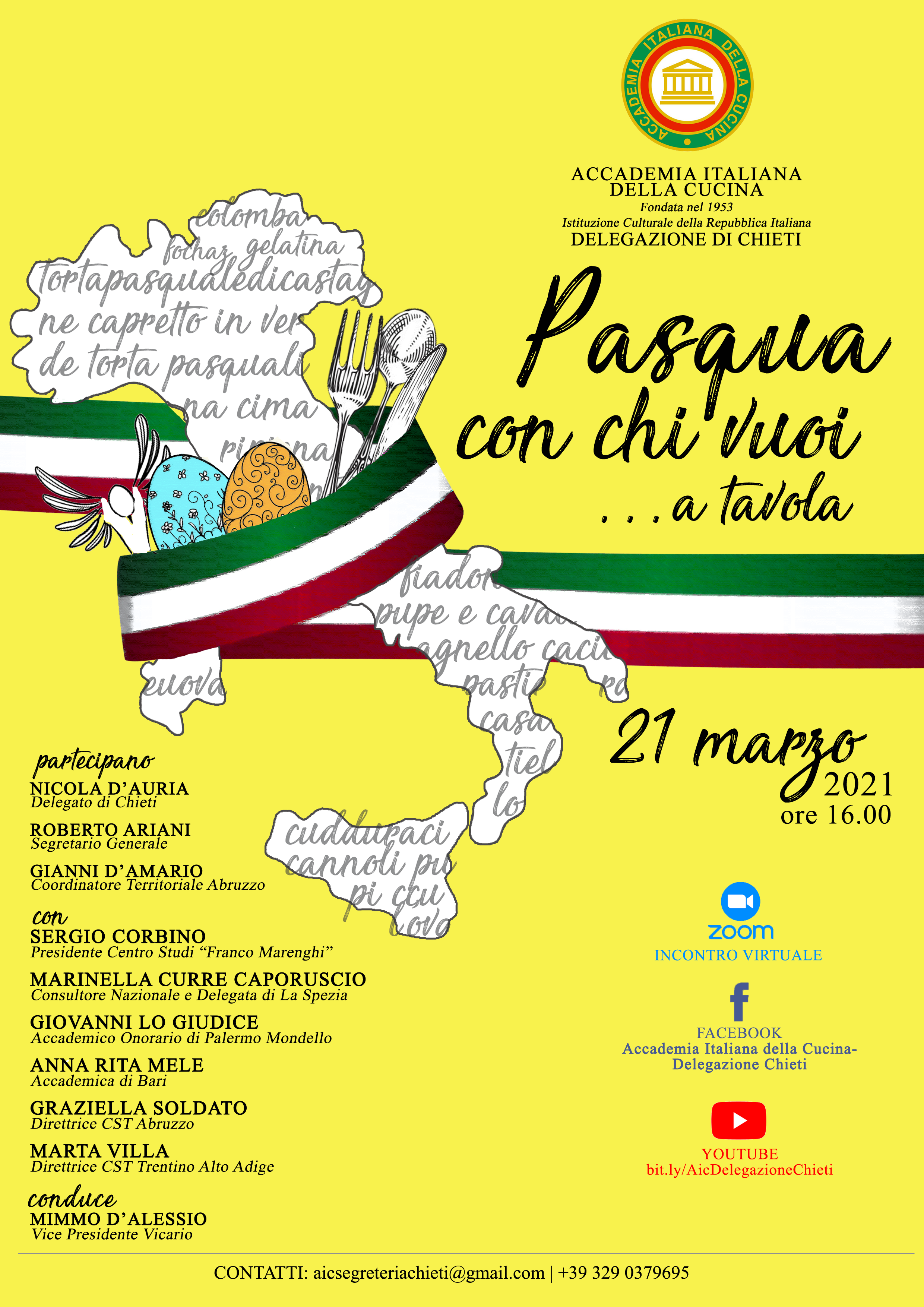La Delegazione di Chieti organizza un incontro virtuale dal titolo " Pasqua con chi vuoi...a tavola" che si terrrà il 21 marzo ore 16 su piattaforma Zoom.