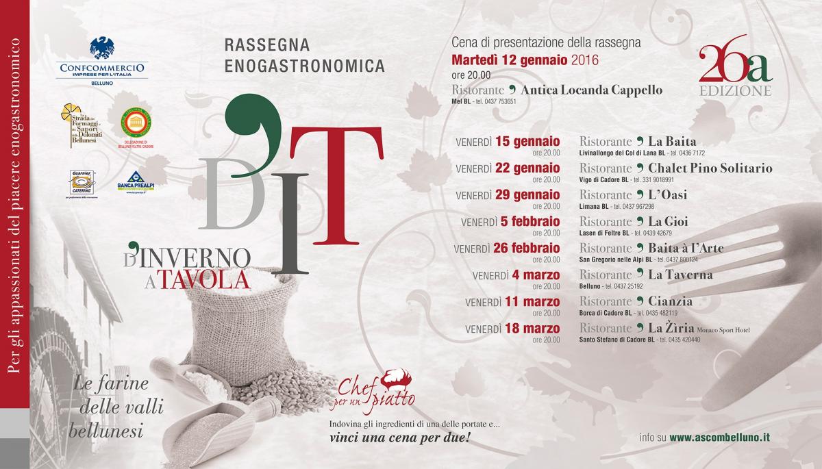 La Delegazione di Belluno-Feltre-Cadore partecipa alla 26esima edizione della rassegna enogastronomica "D'Inverno a Tavola" organizzata dall'ASCOM di Belluno, protagoniste le farine delle valli bellunesi.
